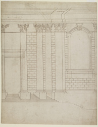 - TitleFinished study for the elevation and section of the south transept portico, showing the central bay, door frame, vault and east window bay