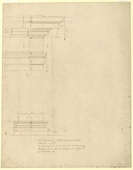 - TitleRecord drawing of the external lower entablature, nearly as built, and of the base of the external Corinthian pilasters