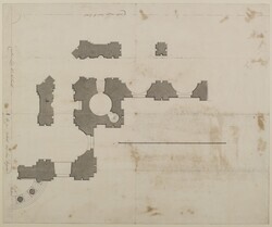 - الوصفA neat copy by Henry Flitcroft, or a draughtsman in his office, of an early plan of the south-east quarter of the cathedral (WRE/2/2/9), to identify a crossing pier repaired in 1752. Drawn scale, c.11 2/3 ft to 1 inch (10 ft = 22 mm). Henry Flitcroft was Surveyor at St Paul’s from 1746 to 1756. The works of repair to the crossing pier are included in a document in his hand in the Lambeth Palace Library dated 1752, and entitled, ‘Account of Some Works now Necessary to be done’ (MS 2047; see Sladen 2004, p.242 and n.70). For convenience, he or a draughtsman copied WRE/2/2/9 at the same scale, but omitted the east bays of the choir and apse. The main purpose of the copy-drawing was to illustrate the east crossing pier of the transept (marked ‘A’). Below the centre line of the transept is the note, ‘A the peer which has been Repaired’, and along both centre-lines, ‘Centre Line East & West’ and ‘Center Line No. and south’. To the right is, ‘South Portico’. In this part of the plan the draughtsman followed the original drawing of c.1675 in not showing the transept portal as built from c.1679. The portal should have a wider opening (10 ft instead of 9 ft) and a projecting frame flanked by engaged three-quarter columns (see WRE/2/4/12). Reverse The sheet was folded three times to form a packet and inscribed on the back in brown ink, in the same hand, ‘Mr Flitcrofts Plan of the Peers on / the South side of the Church be / tween the middle & side Isles / Aug 1752’.